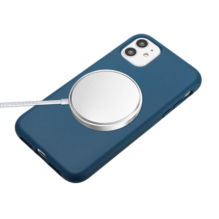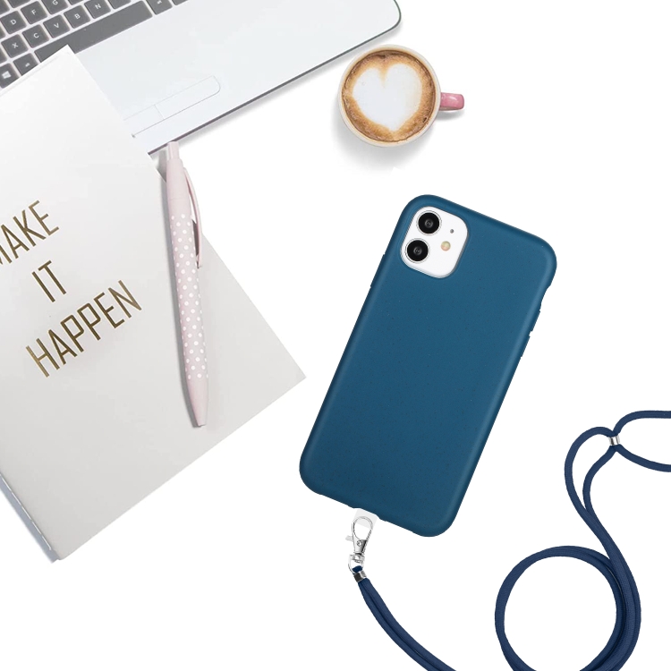Funda para Teléfono iPhone 12 Material de Paja Magnético Magsafe de Trigo + TPU con Cordón (Azul)