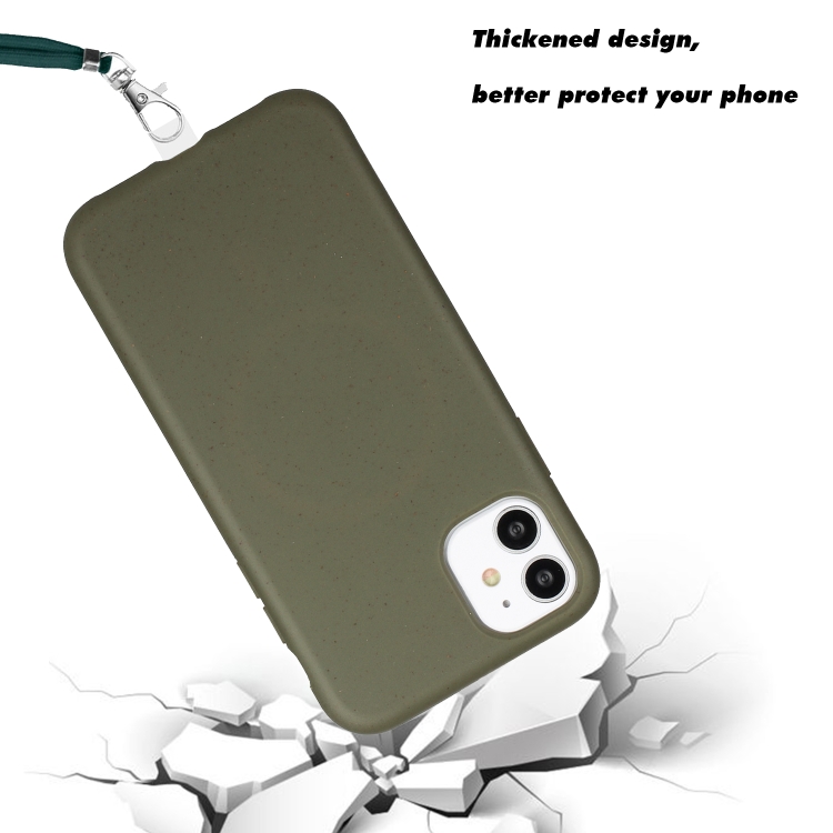 Funda para Teléfono iPhone 12 Material de Paja Magnético Magsafe de Trigo + TPU con Cordón (Verde Militar)