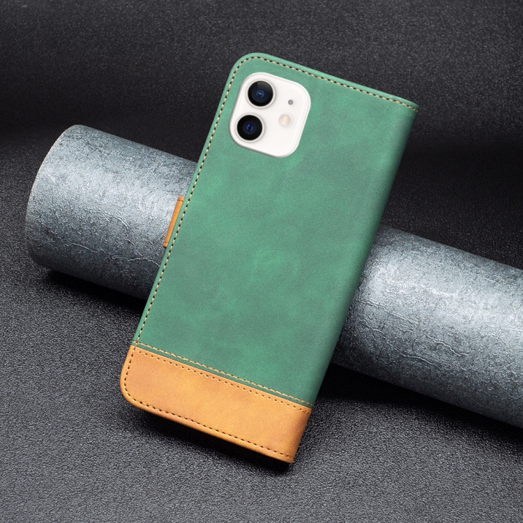 Funda para iPhone 12 Mini Bf11 Color Matching Skin Feel Leather Phone Case (Verde)