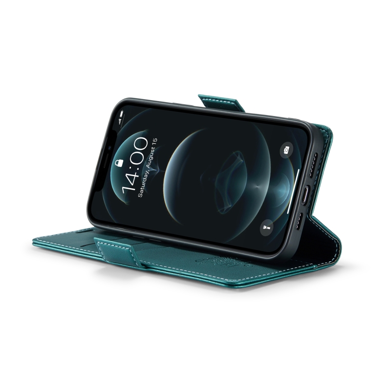Funda para iPhone 12 Mini Caseme 023 Mariposa Hebilla Litchi Textura Rfid Cuero Antirrobo (Azul Perlado)