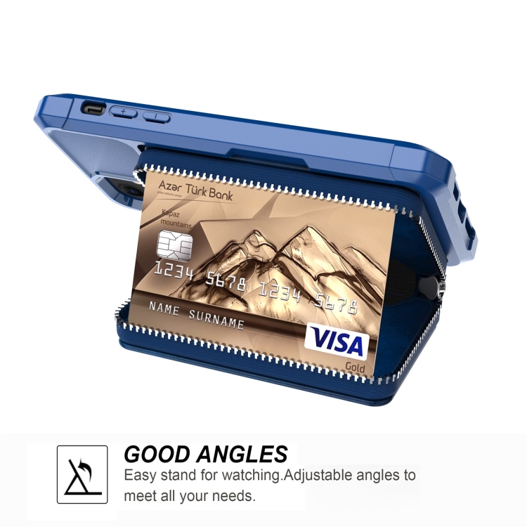 Funda Trasera Cartera iPhone 12 Mini Cremallera Tarjeta Bolsa Pu (Azul)