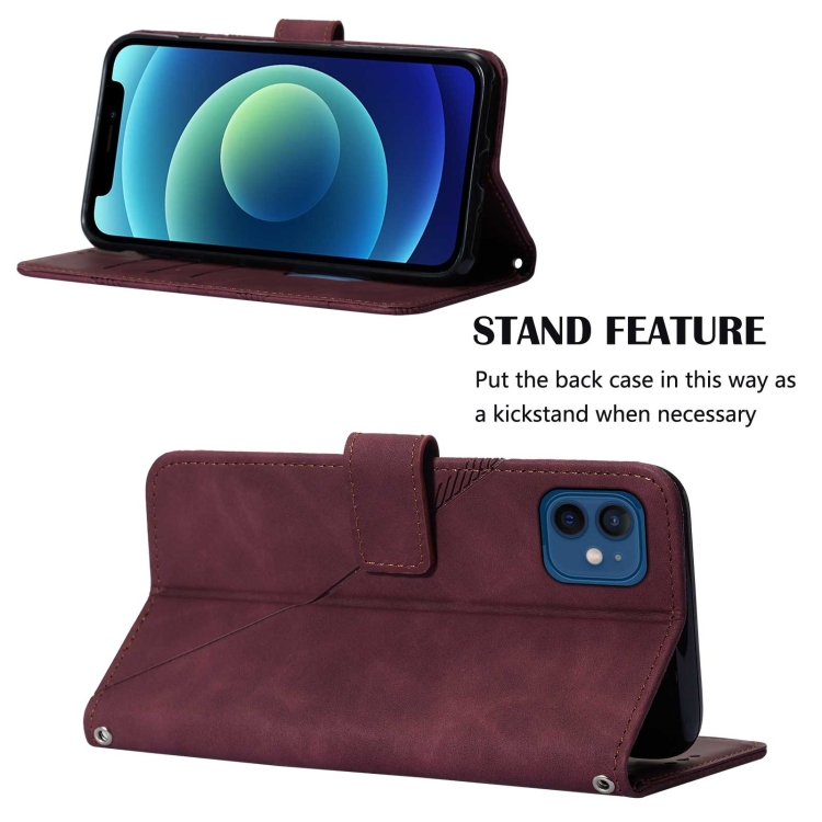 Funda para iPhone 12 Mini Crossbody 3D de Cuero con Tapa en Relieve (Rojo Vino)