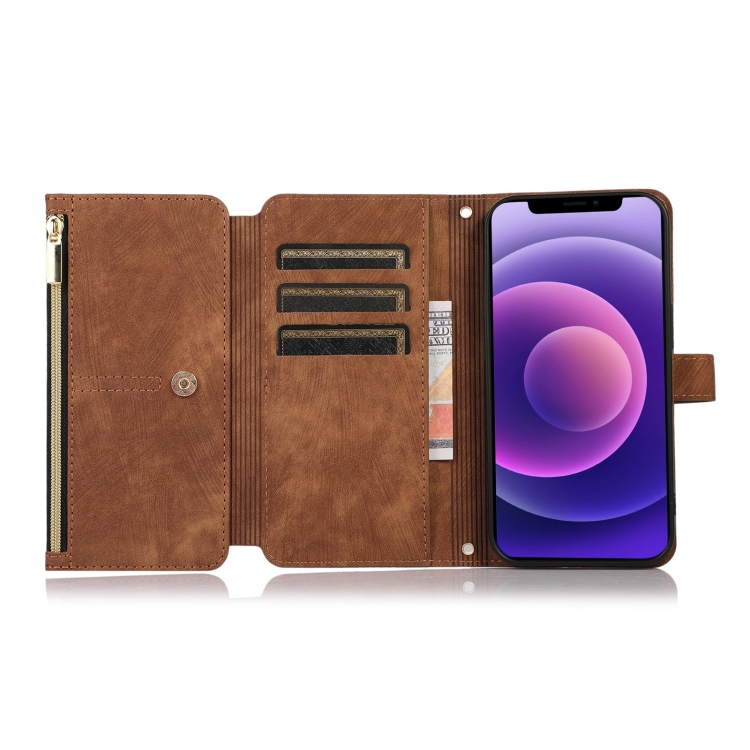 Funda para iPhone 12 Mini Dream 9-Card Wallet Zipper Bag Cuero (Marrón)