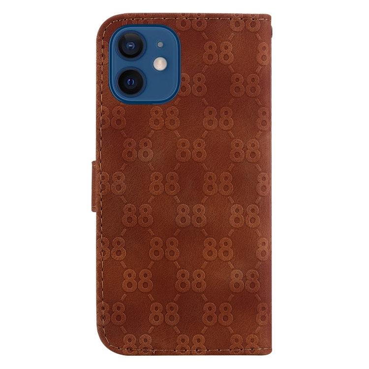 Estuche para Teléfono iPhone 12 Mini Cuero En Relieve Doble Forma de 8 (Marrón)