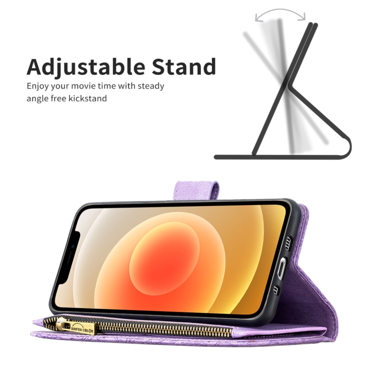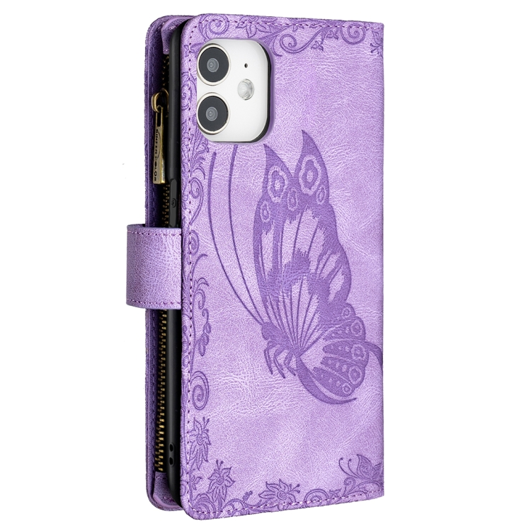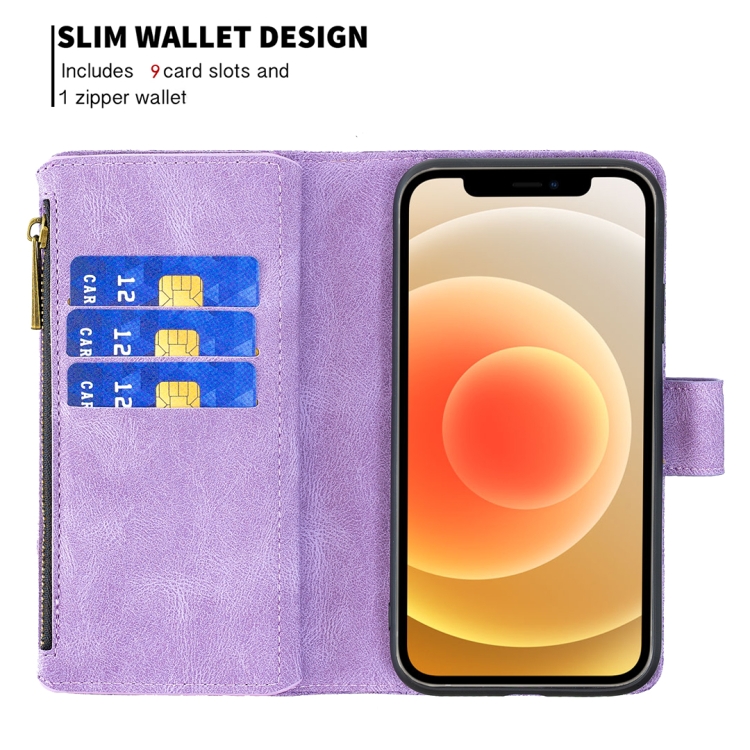 Funda para iPhone 12 Mini Cuero Horizontal Flip con Soporte y Ranuras (Púrpura)