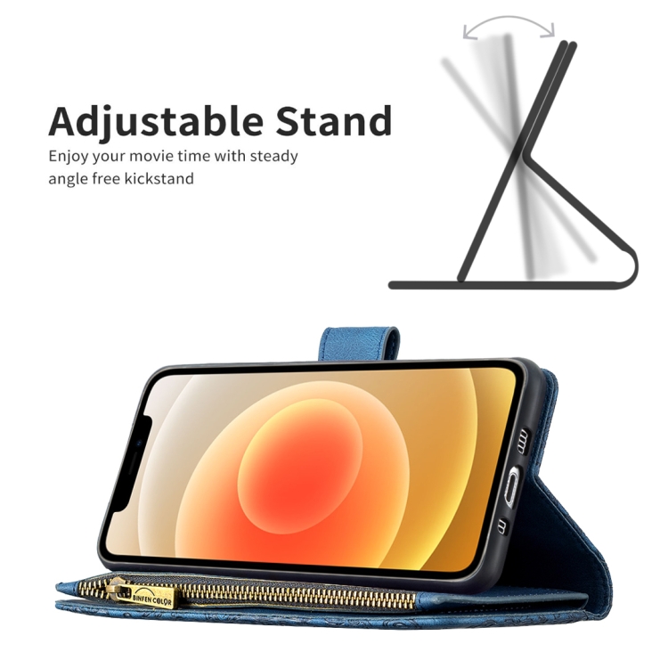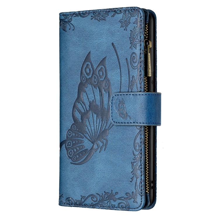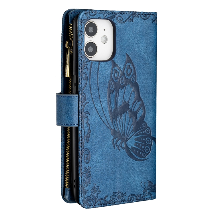 Funda de Cuero para iPhone 12 Mini Flying Butterfly Pattern Flip Horizontal con Soporte y Billetera (Azul)