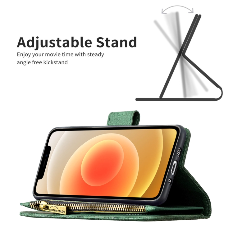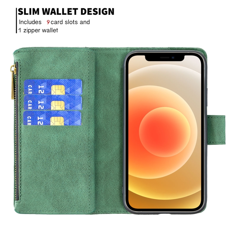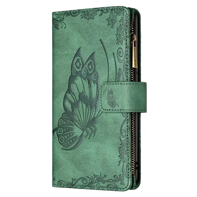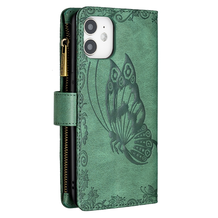 Funda de Cuero para iPhone 12 Mini Flying Butterfly Pattern con Soporte y Billetera (Verde)