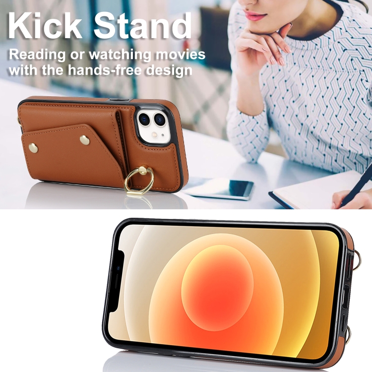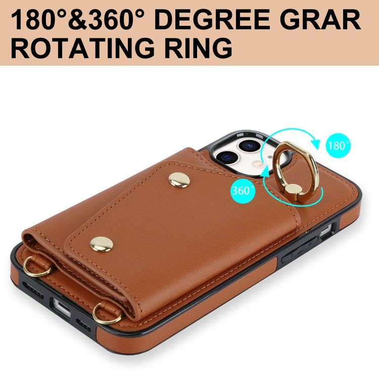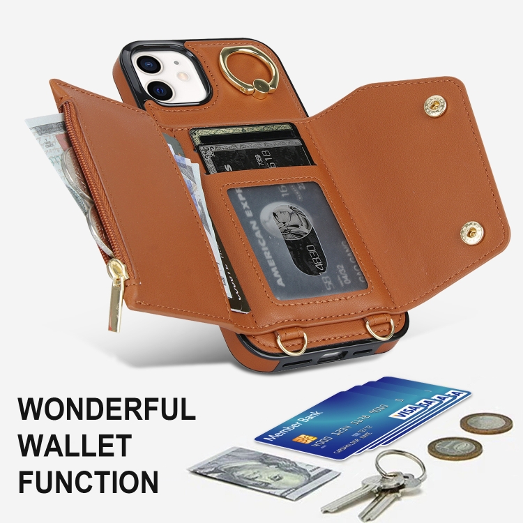 Funda para iPhone 12 Mini con Cremallera y Doble Cordón (Marrón)