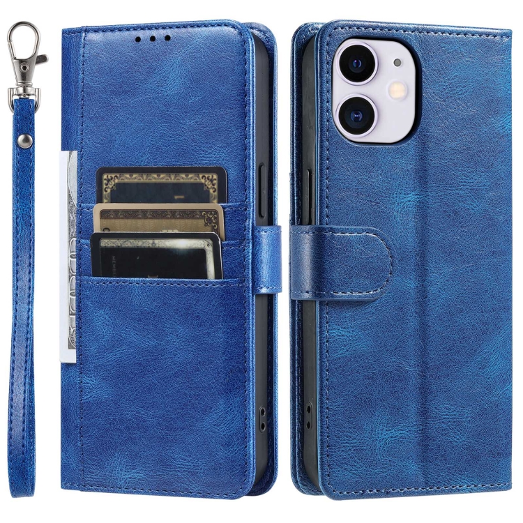 Funda de cuero para iPhone 12 Mini con billetera para 6 tarjetas (Azul)