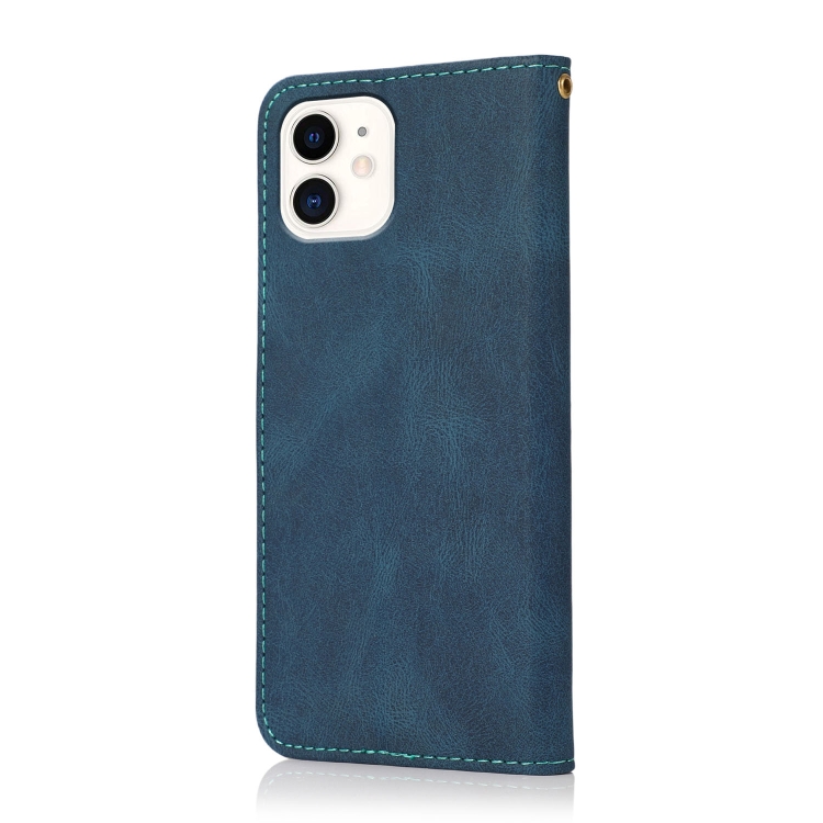 Funda de Teléfono iPhone 12 Mini Cuero Costuras Dos Colores (Azul Verde)