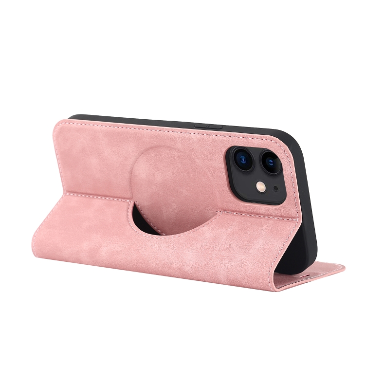 Funda de Teléfono iPhone 12 Mini Cuero Magsafe con Carga Inalámbrica (Rosa)