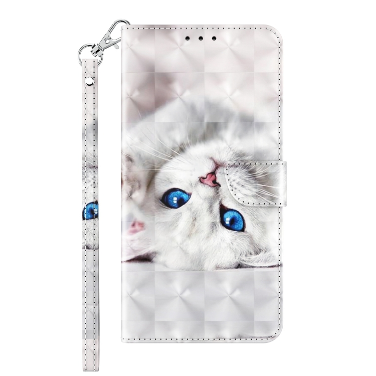 Funda de Teléfono iPhone 12 Mini Cuero Pintado En 3D Reflejo de Gato Blanco