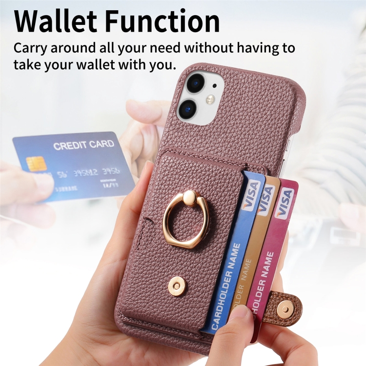 Funda para Teléfono iPhone 12 Mini con Parte Posterior de Tarjeta y Anillo de Cuero Litchi (Albaricoque Azufaifo)
