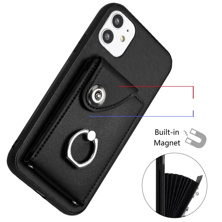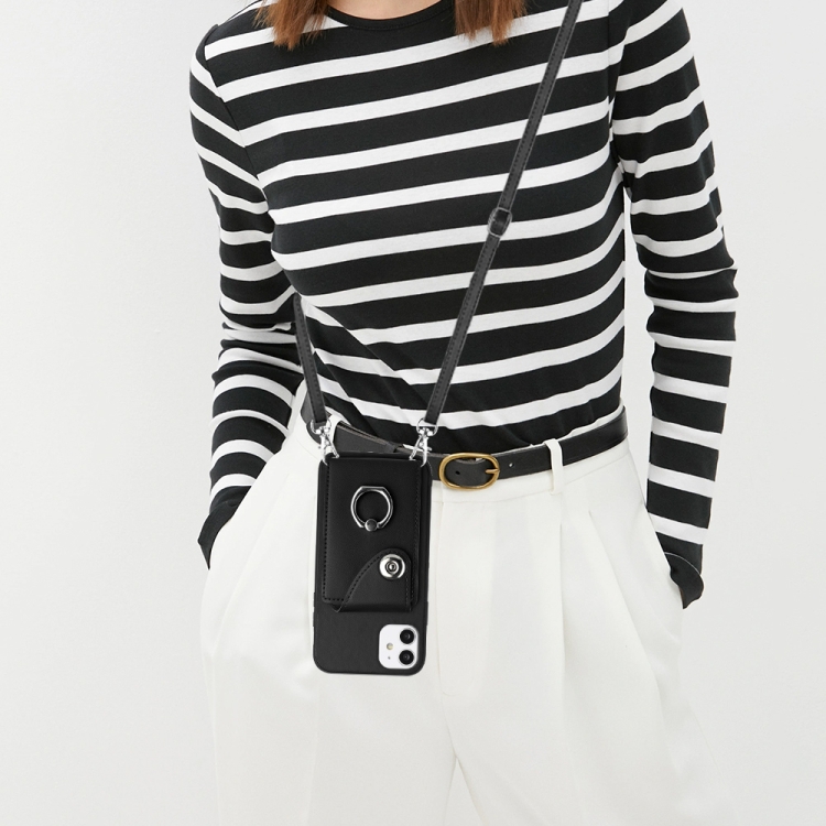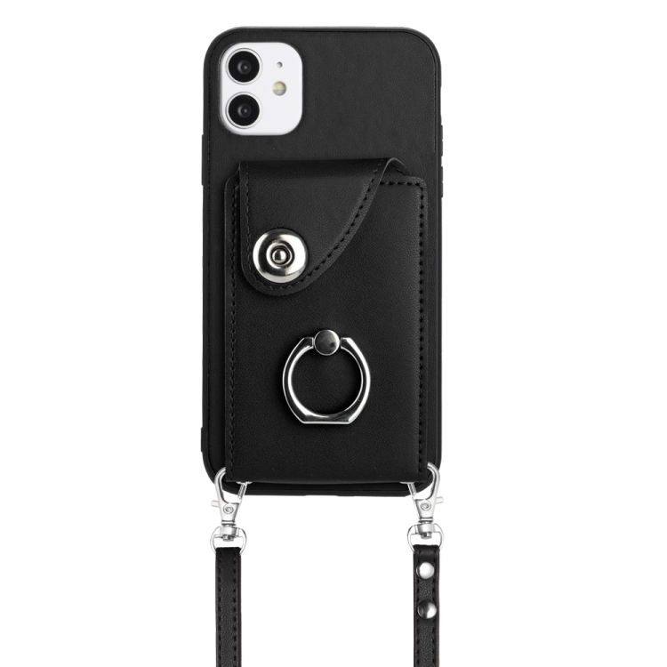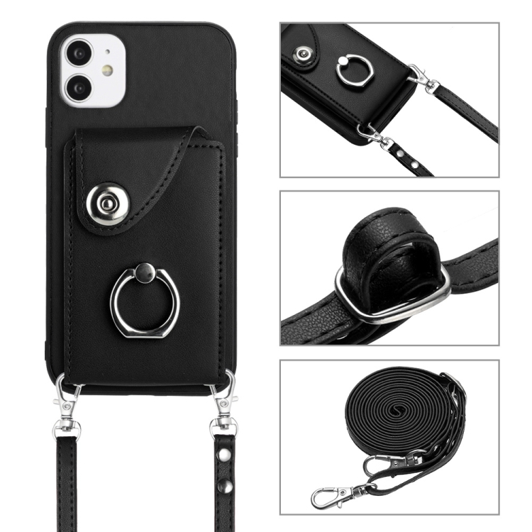 Funda para Teléfono iPhone 12 Mini con Soporte para Anillo y Bolsa para Tarjeta con Cordón Largo (Negro)