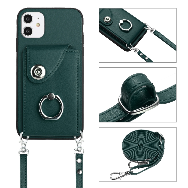 Funda para Teléfono iPhone 12 Mini con Soporte para Anillo y Bolsa para Tarjeta con Cordón Largo (Verde)
