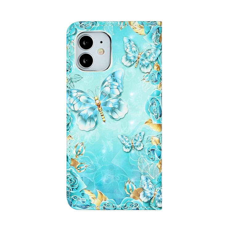 Funda para Teléfono iPhone 12 Mini Cuero Dibujo 3D Relieve Óleo (Mariposas Azules)