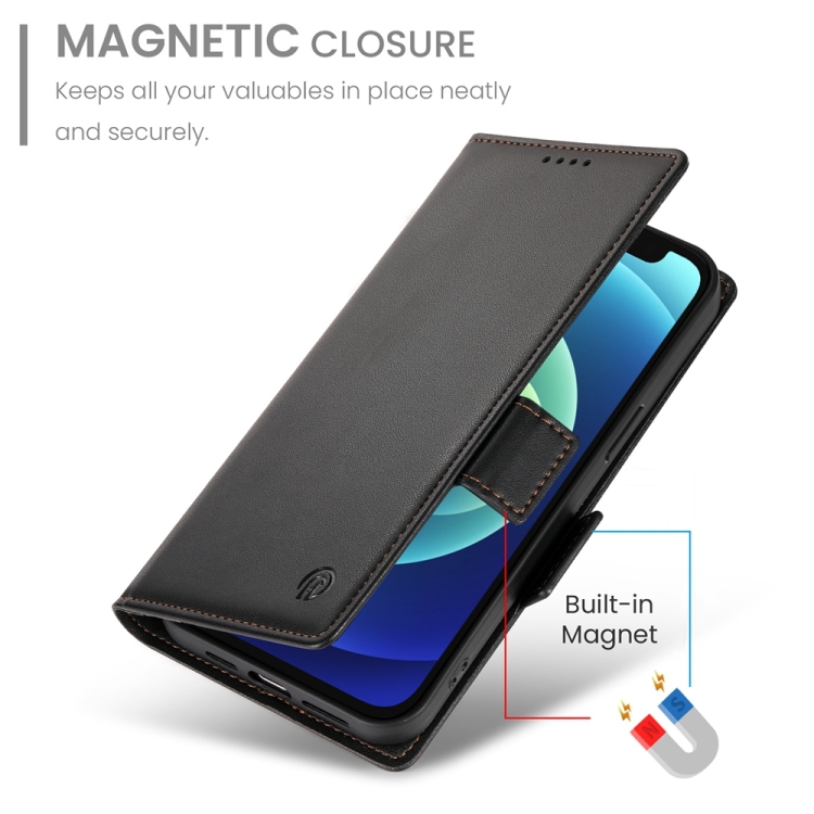 Funda para Teléfono iPhone 12 Mini Cuero Esmerilado Magnético con Hebilla Lateral (Negro)