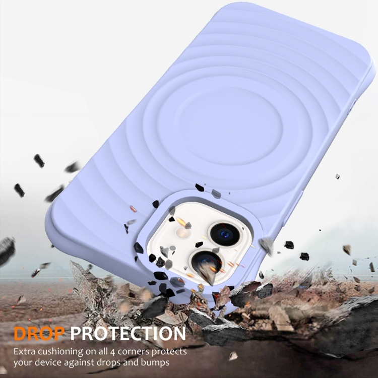 Funda para Teléfono iPhone 12 Mini Silicona Líquida Magnética Magsafe Textura Ondulada (Púrpura)