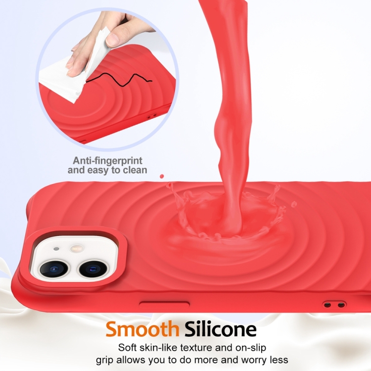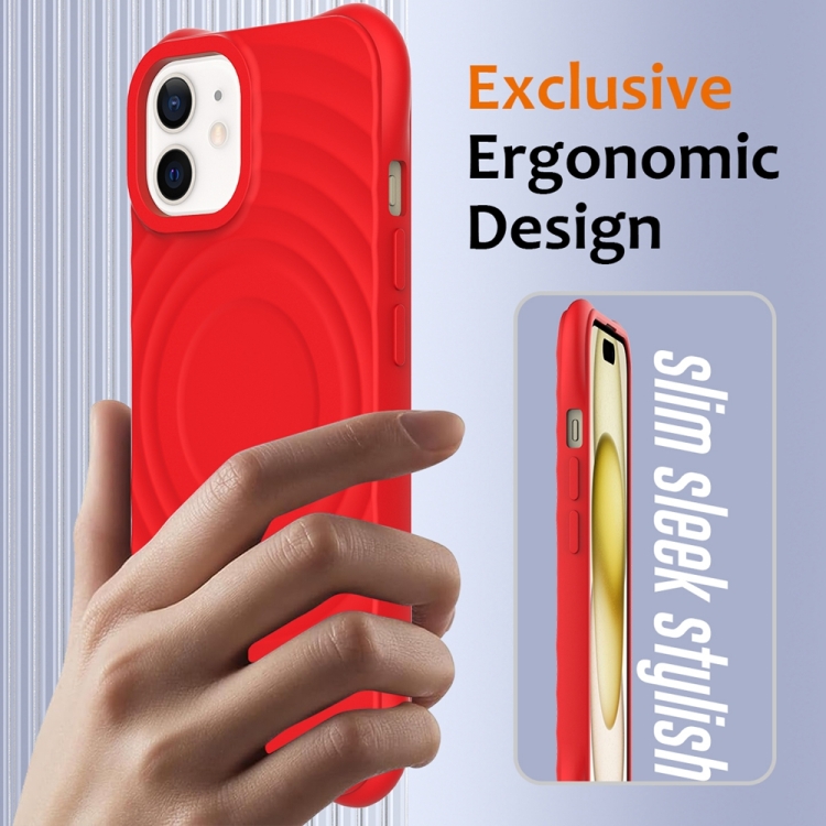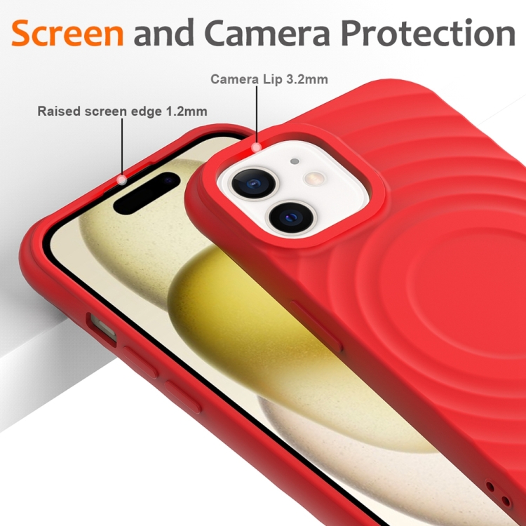 Funda para Teléfono iPhone 12 Mini Silicona Líquida Magnética Magsafe Textura Ondulada (Rojo)