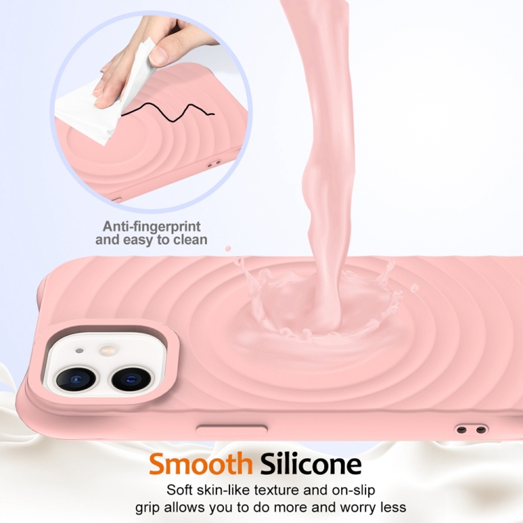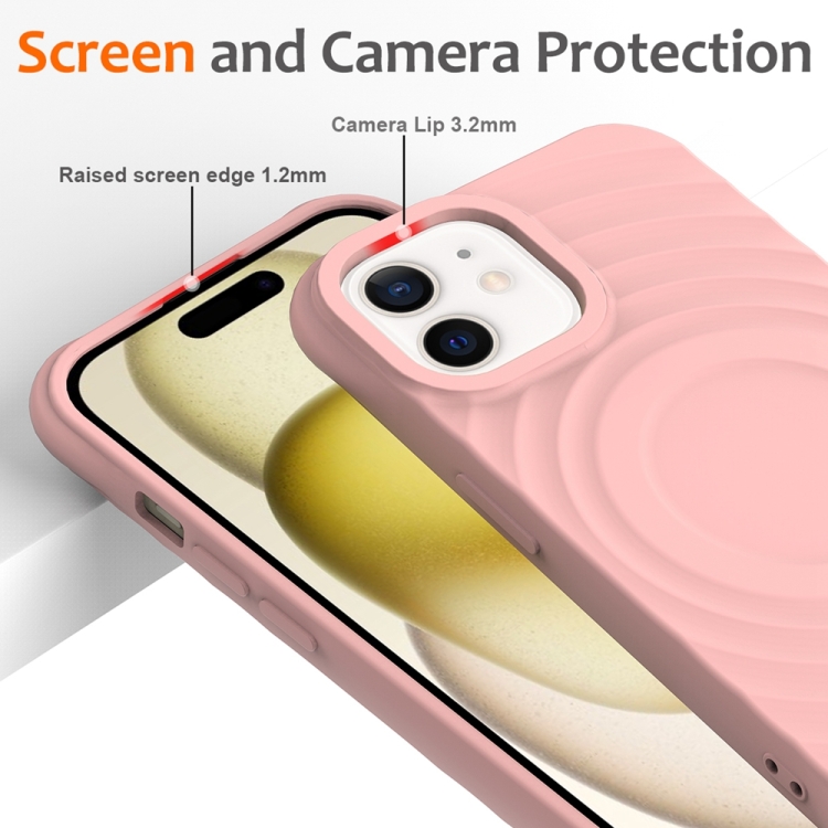 Funda para Teléfono iPhone 12 Mini Silicona Líquida Magnética Magsafe Textura Ondulada (Rosa)