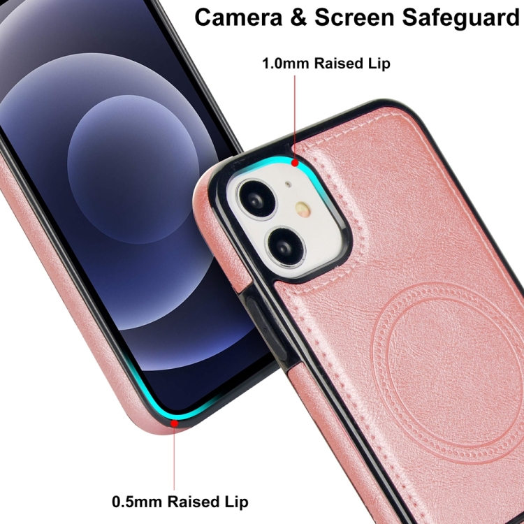 Funda para Teléfono iPhone 12 Mini Magsafe con Soporte Invisible de Cuero Retro (Oro Rosa)