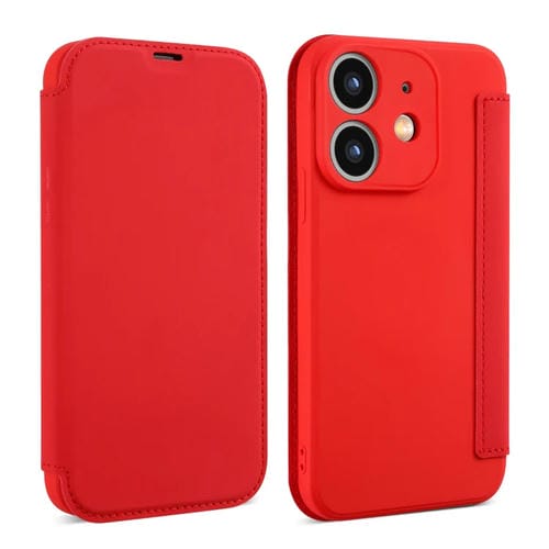 Funda para Teléfono iPhone 12 Mini Cuero Sensación de Piel Líquida Ranuras para Tarjetas (Rojo)