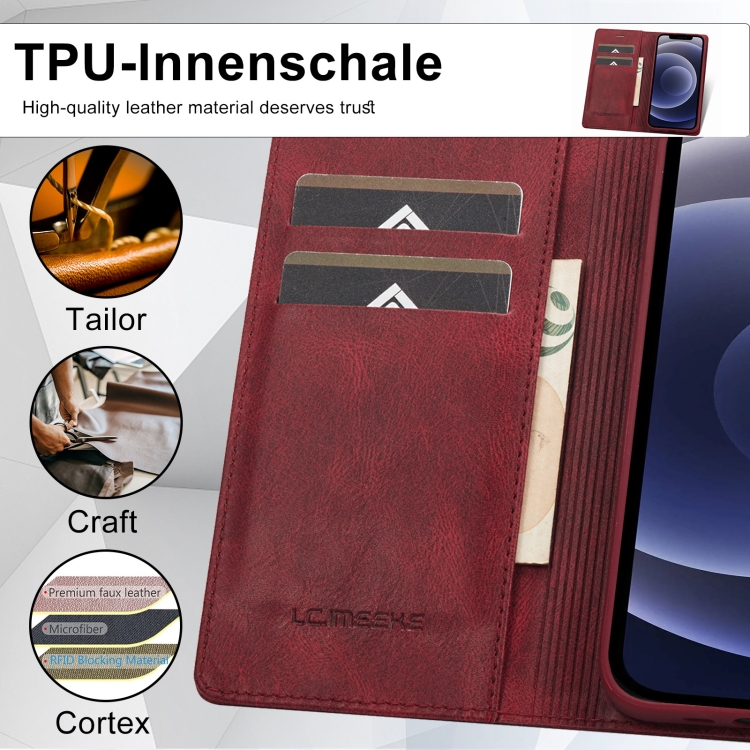Funda para iPhone 12 Mini Lc.Imeeke Rfid Cuero Antirrobo (Rojo)