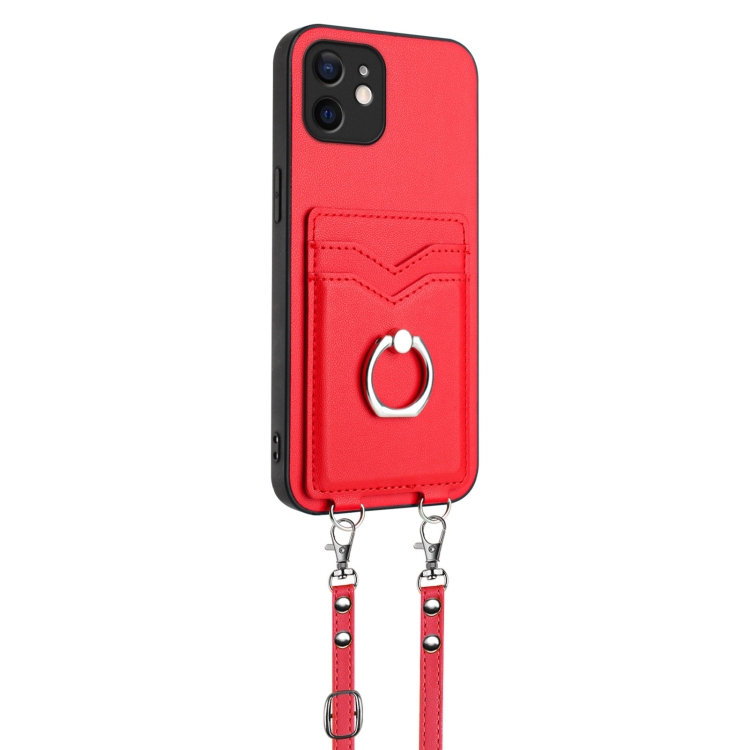 Funda para Teléfono iPhone 12 Mini R20 con Soporte para Tarjeta y Anillo de Cuerda Cruzada (Rojo)