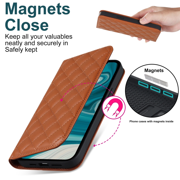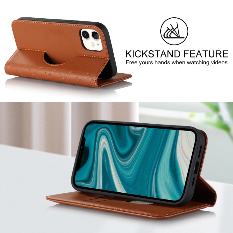 Funda para iPhone 12 Mini Rhombic Magsafe Rfid Antirrobo de Cuero (Marrón)
