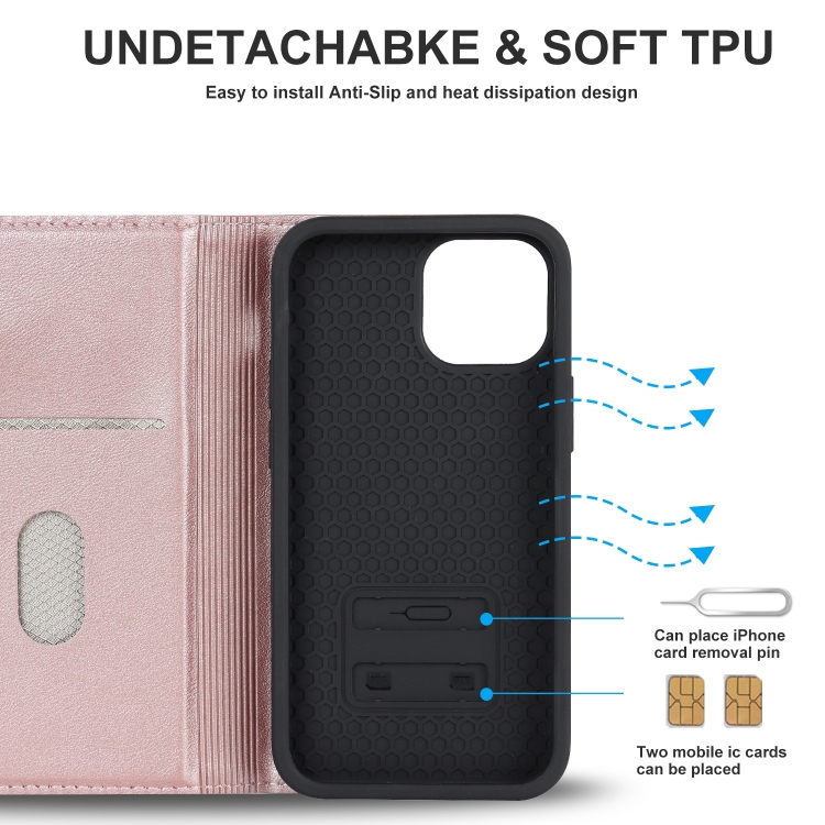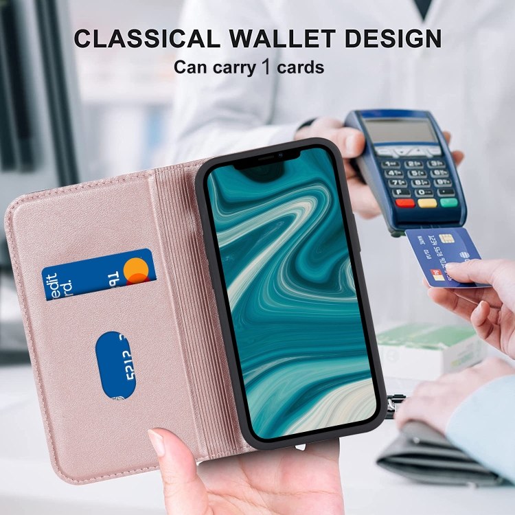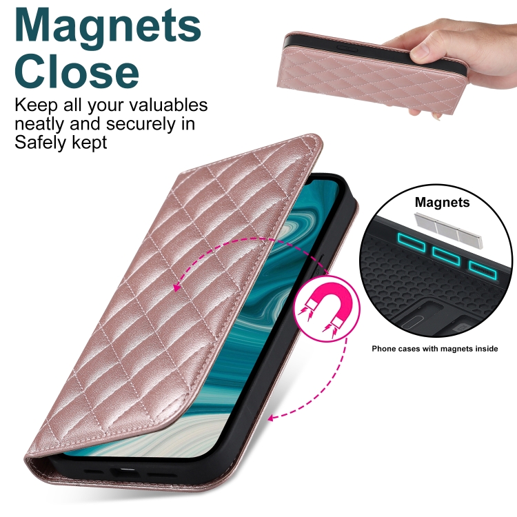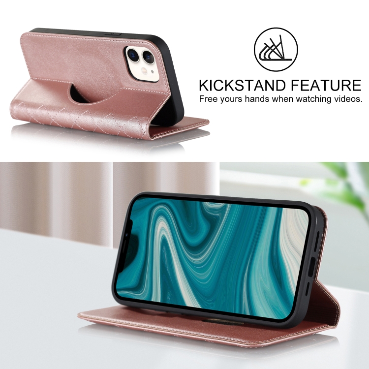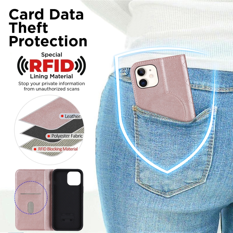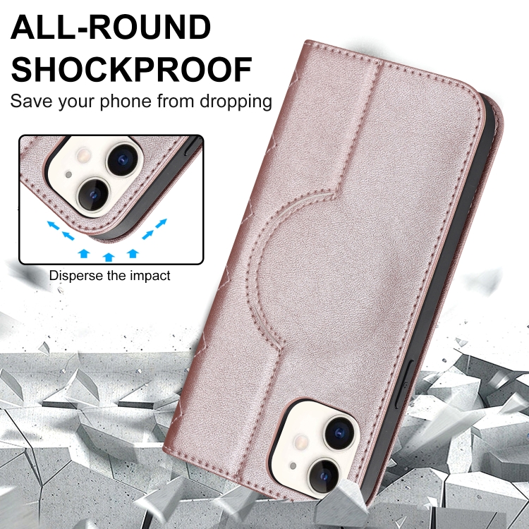 Funda para iPhone 12 Mini Rhombic Magsafe Rfid Cuero Antirrobo (Oro Rosa)