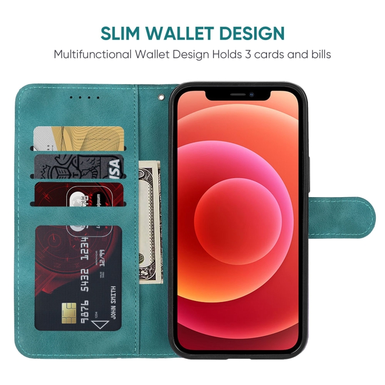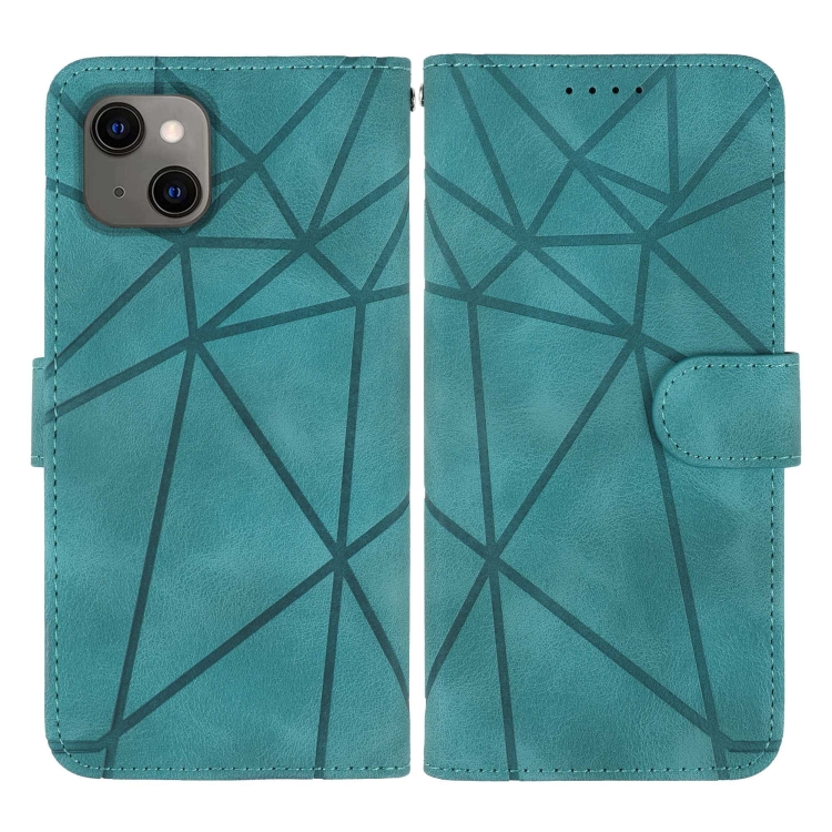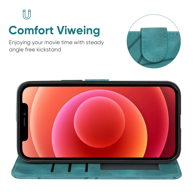 Funda de Cuero para Teléfono iPhone 12 Mini Skin Feel Líneas Geométricas (Verde)