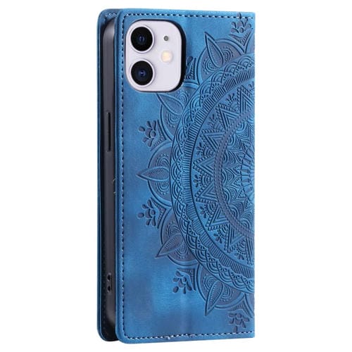 Funda de Cuero Magnética Totem para iPhone 12 Mini en Relieve (Azul)