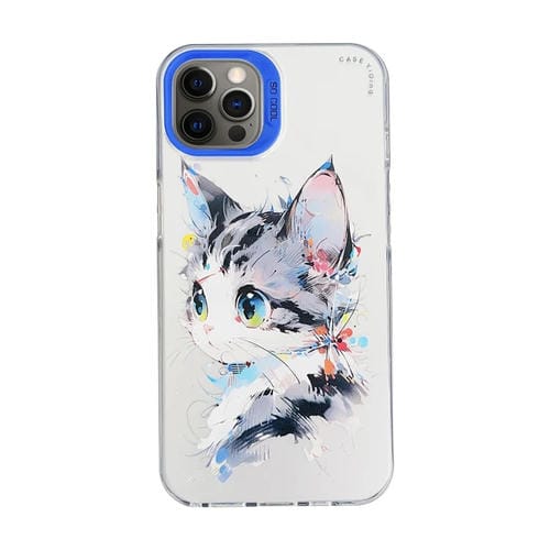 Funda para Teléfono iPhone 12 Pro Cartoon Animal Graffiti PC y TPU (Gato de Cara Blanca)