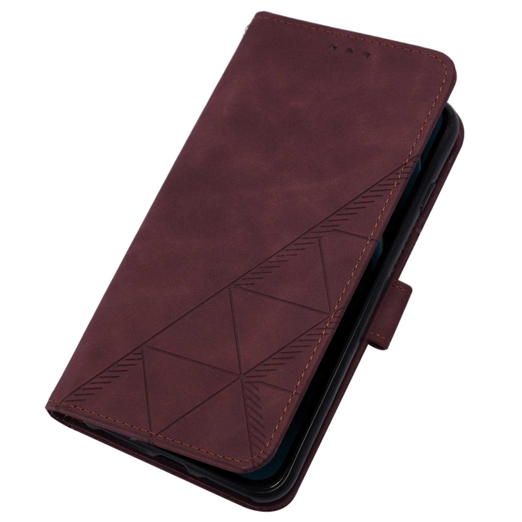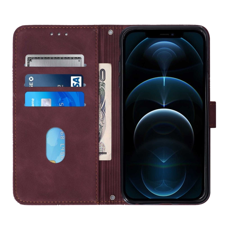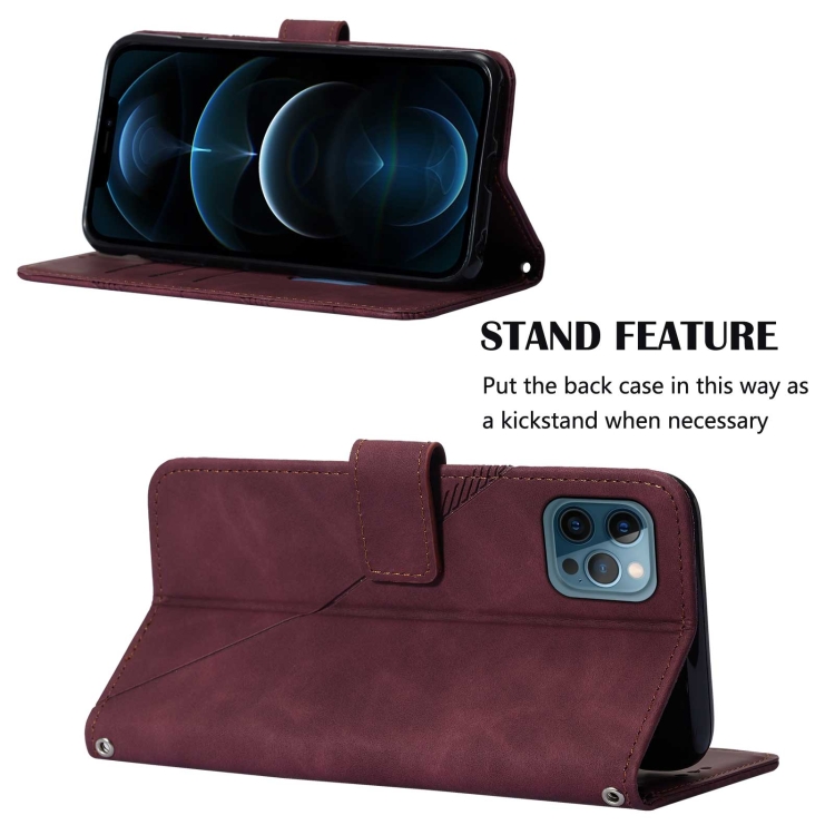 Funda para iPhone 12 Pro Crossbody 3D de Cuero con Tapa en Relieve (Rojo Vino)