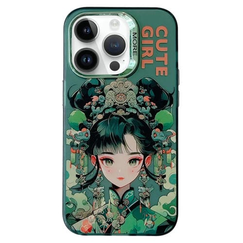Funda para iPhone 12 Pro Anillo de Lente Electrochapado PC Hybrid TPU (Chica de Fondo Verde)