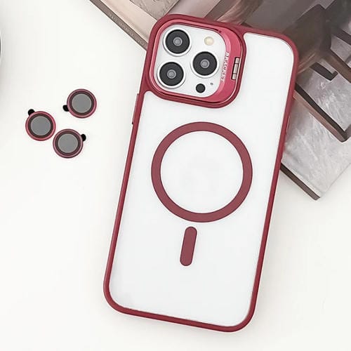Estuche para Teléfono iPhone 12 Pro TPU Híbrido Acrílico con Soporte Magsafe y Película para Lentes (Rojo)
