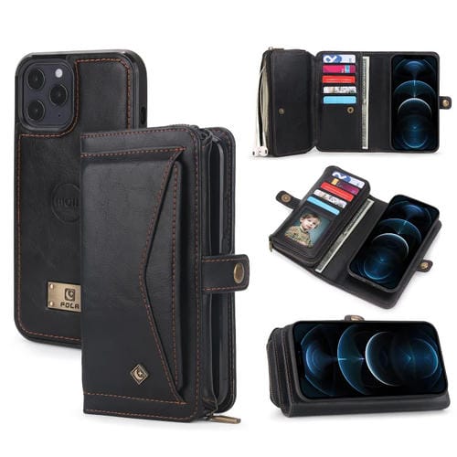 Funda para Teléfono iPhone 12 Pro Cuero con Billetera y Cremallera Multifuncional (Negro)