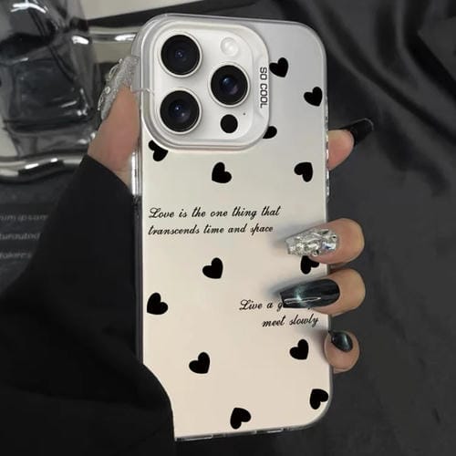 Funda híbrida para iPhone 12 Pro TPU para PC con pintura plateada (Corazones de amor blancos)