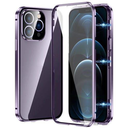 Funda Magnética para iPhone 12 Pro Vidrio Templado HD con Doble Hebilla (Púrpura)