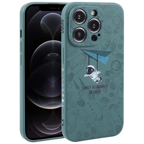Funda para teléfono iPhone 12 Pro borde recto silicona patrón astronauta (Green)