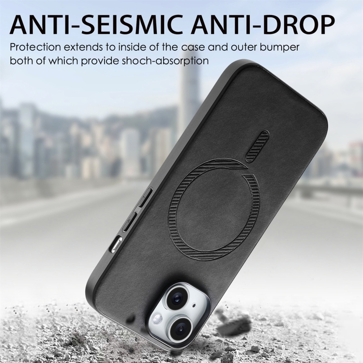 Funda para Teléfono iPhone 12 Pro con Contraportada PU Magsafe Retro (Negro)