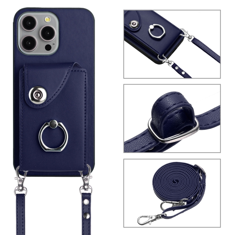 Funda para Teléfono iPhone 12 Pro con Soporte para Anillo y Bolsa para Tarjeta con Cordón Largo (Azul)