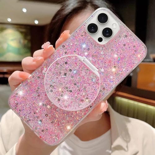 Funda para Teléfono iPhone 12 Pro TPU Epoxi Soporte Espejo Redondo Lentejuelas Estrelladas (Rosa)