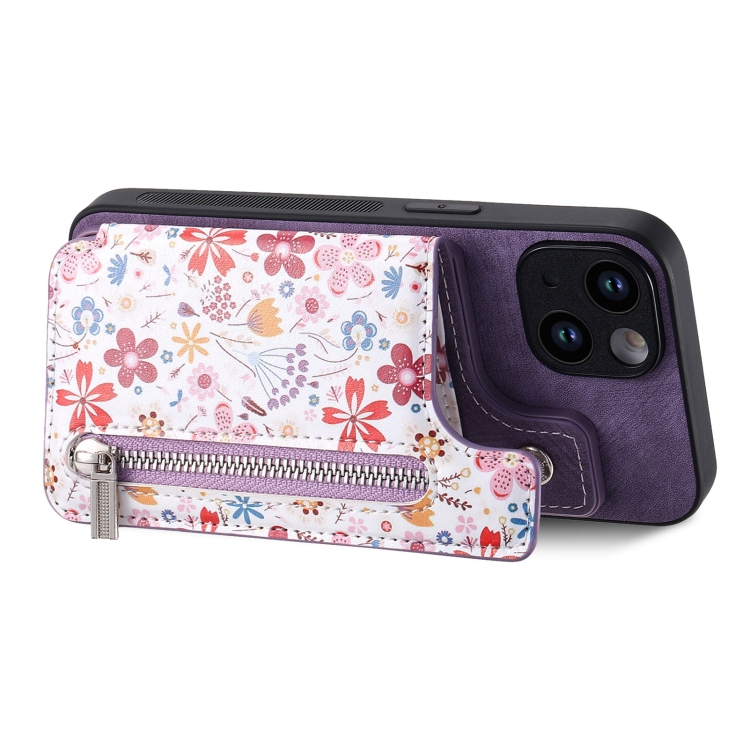 Funda Trasera iPhone 12 Pro con Billetera y Cremallera Pintada Retro (Púrpura)