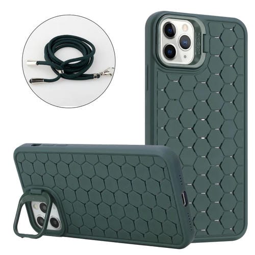 Funda para Teléfono iPhone 12 Pro Honeycomb Radiating Lens Holder Magsafe con Cordón (Verde)