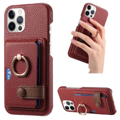 Funda para Teléfono iPhone 12 Pro Litchi Leather Oil Edge Ring Card Back (Rojo)