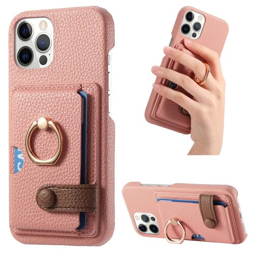Funda para teléfono iPhone 12 Pro Litchi Leather Oil Edge Ring Card Back (Rosa)