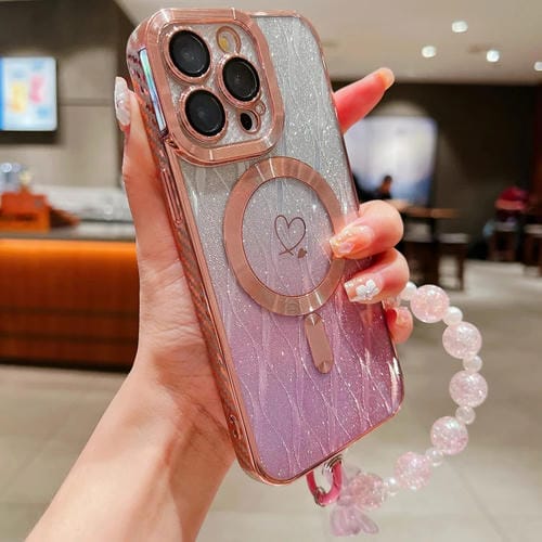Funda para Teléfono iPhone 12 Pro Loves Leaves Pulseras con Brillo Degradado Magsafe TPU Fibra de Carbono (Rosa)