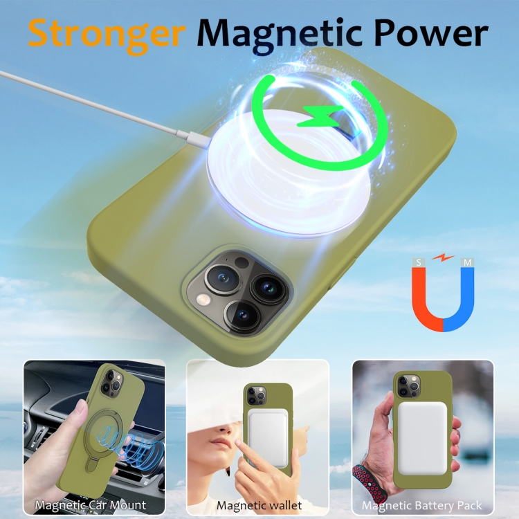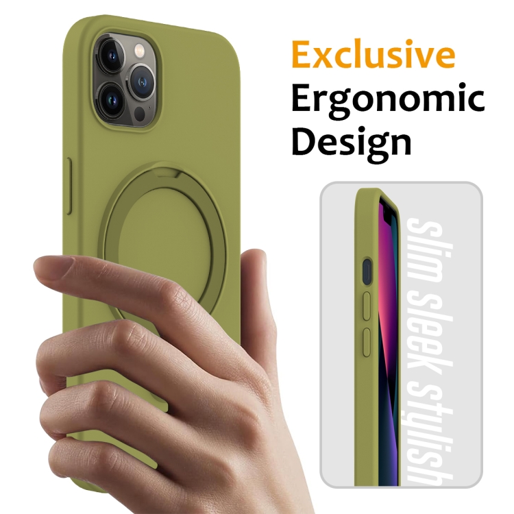 Funda para Teléfono Apple iPhone 12 Pro Silicona Líquida Magnética con Soporte para Anillo (Verde Sauce)
