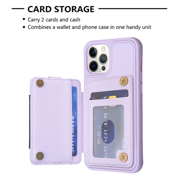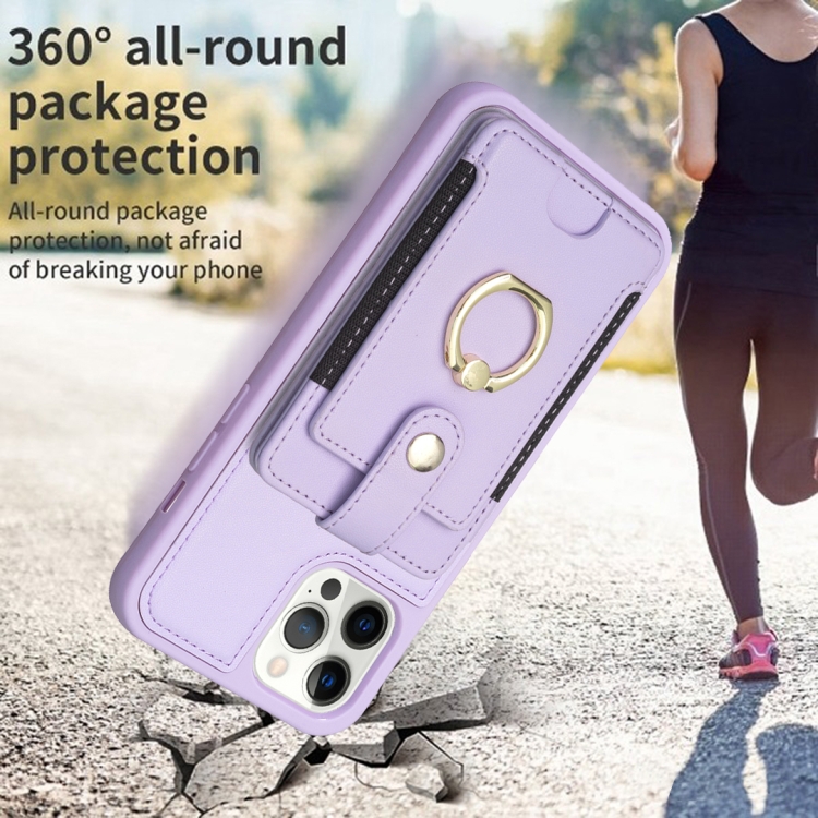 Funda de teléfono Bf27 para iPhone 12 Pro Max con soporte para tarjeta y anillo de metal (Púrpura)